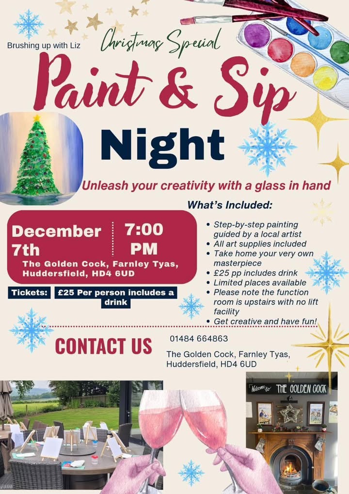 Tickets are £25 and all your supplies are included as-well as a free glass of Prosecco or hot drink🍾